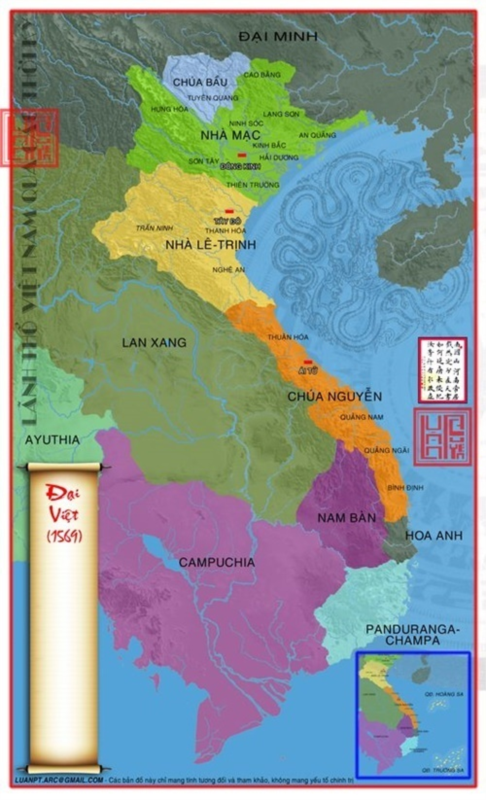 Bản đồ Đại Việt năm 1569 với sự chia cắt.