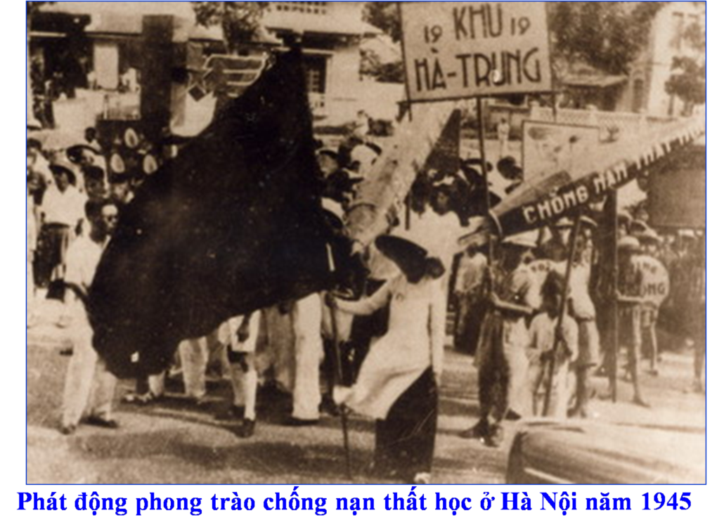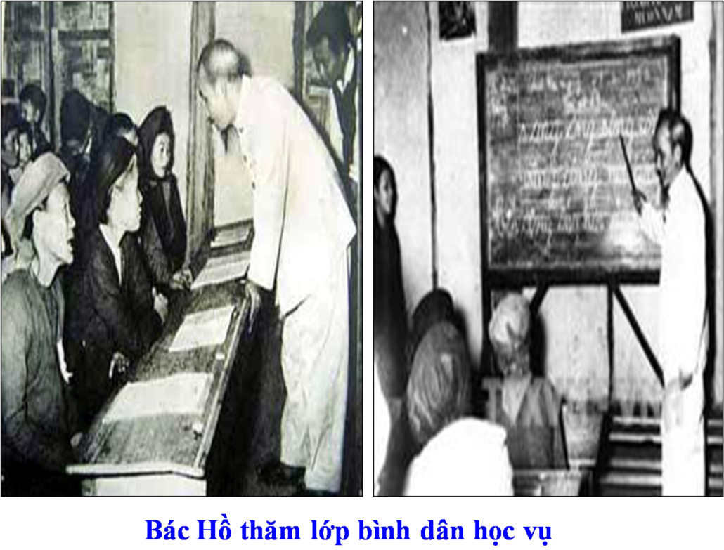 - Diệt giặc dốt: Ngày 8/9/1945 , chủ tích HCM kí sắc lệnh thành lập Nha Bình dân học vụ, kêu gọi xóa nạn mù chứ. Nội dung , phương pháp giáo dục được đổi mới.