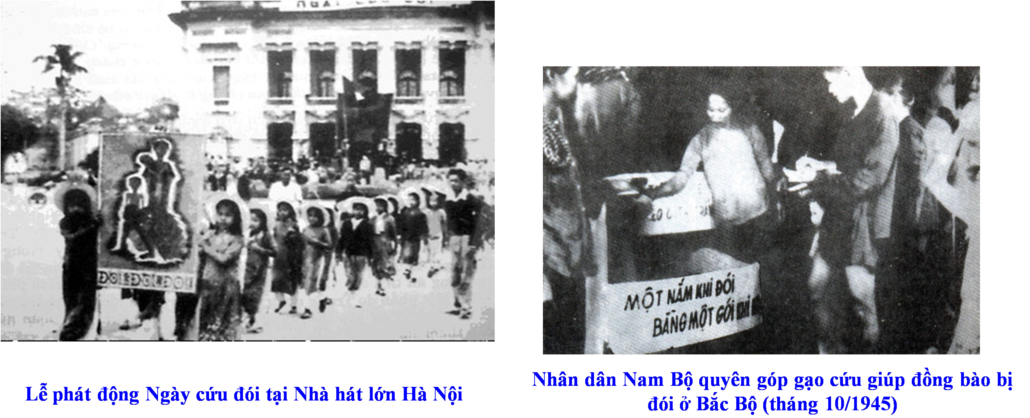 - Diệt giặc đói:Ngắn hạn : lập hủ gạo cứu đói, tổ chức “ ngày đồng tâm” , kêu gọi “ nhường cơm sẻ áo”. Dài hạn: Tăng gia sản xuất, chia ruộng.